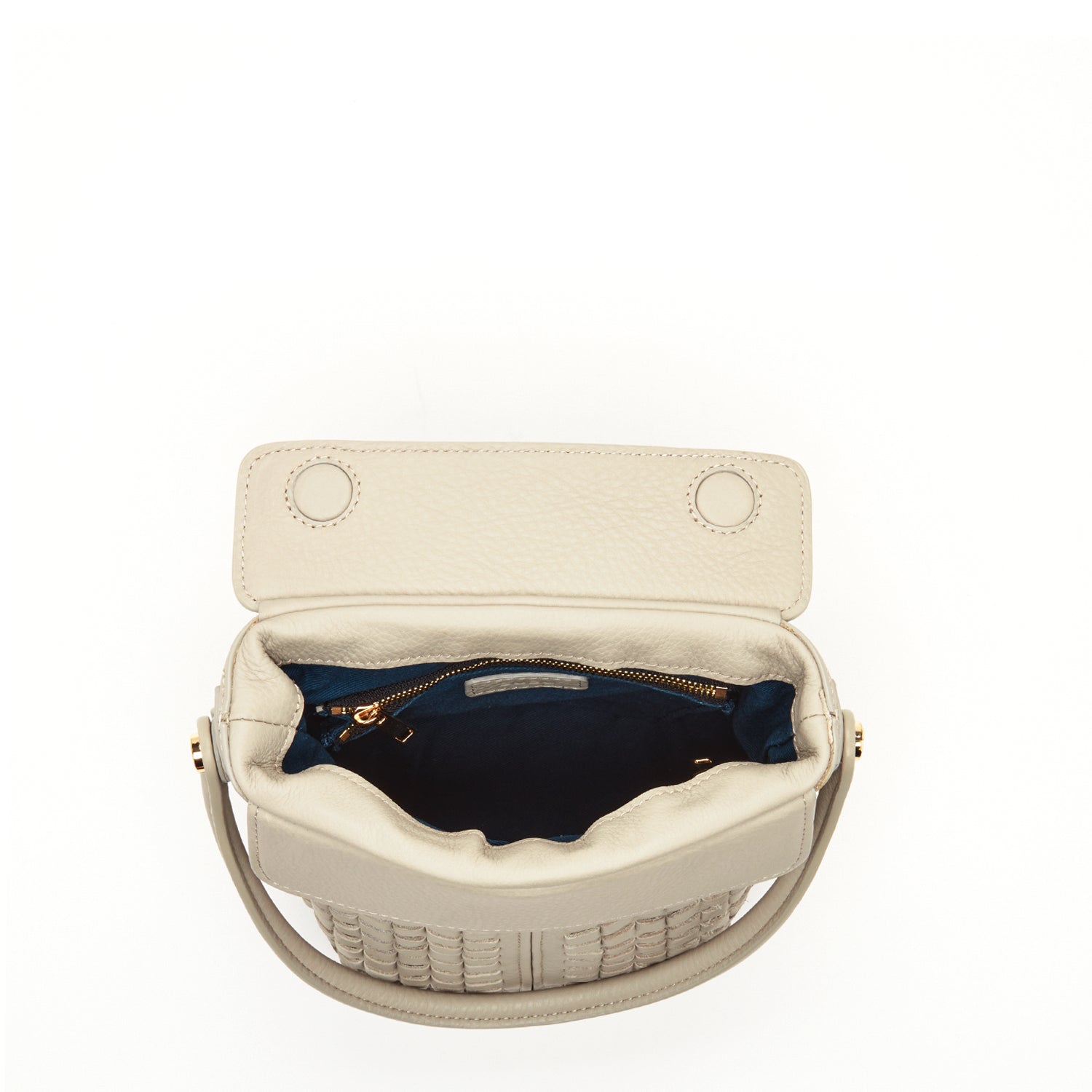 Grayish Beige Woven Leather Crossbody Bucket Bag